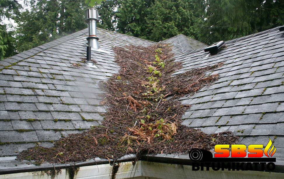 Poista esimerkiksi harjalla bitumikatolle kertyneet oksat, risut, lehdet ja muu roska.